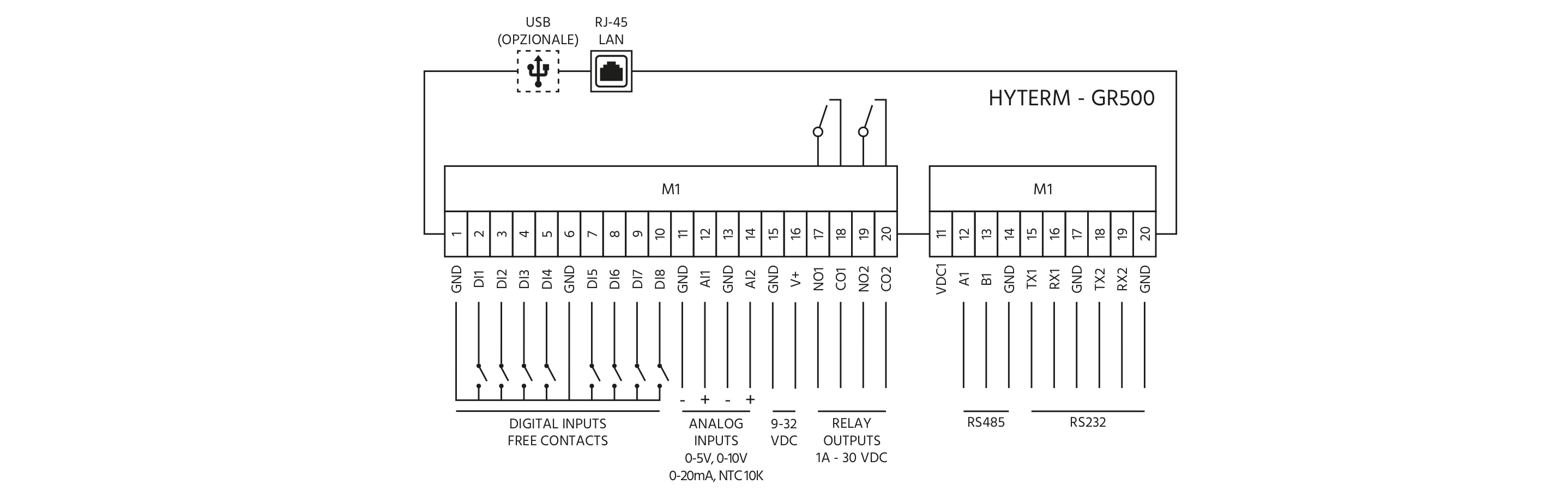 GR500 raccoglie e storicizza dati, informazioni e misure, controlla lo stato ed il funzionamento di impianti e macchinari da remoto.